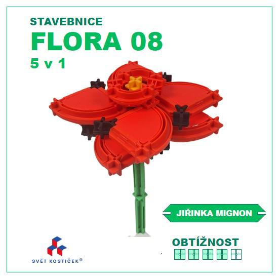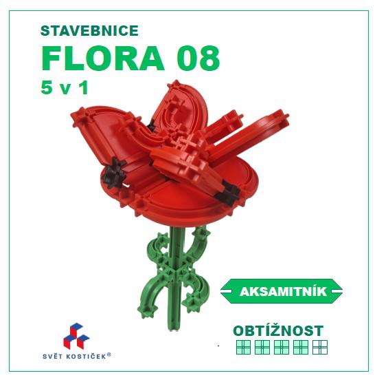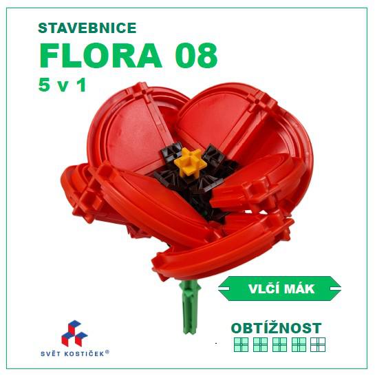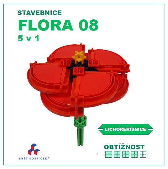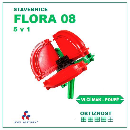 Sada obsahuje standardní originální díly SEVA a několik originálních dílů SEVA v dosud komerčně nevydaných barvách, například konstrukční (Ypsilon) spojka v černé a konstrukční X spojka ve žluté barvě. Počet dílů v sadě je vždy na jeden z uvedených modelů.Návody k sestavení 5 různých detailně propracovaných druhů květin jsou ke stažení pod unikátním QR kódem, který je součástí každé naší stavebnice. Obtížnost sestavování modelů této sady je těžší (škála obtížnosti 4/5) a je určena náročnějším stavitelům pro rozvoj techniky skládání pomocí rovných a obloukových dílů, konstrukčních spojek (X a Y) a výplní ze stavebnice SEVA a dětem je doporučena od 6 let věku výše. Nejedná se o plagiát asijské výroby. Díly nejsou nijak modifikovány, lepeny, ani lakovány. Tvar a barevné řešení modelů edice SEVA FLORA je duševním vlastnictvím projektu Svět kostiček®.