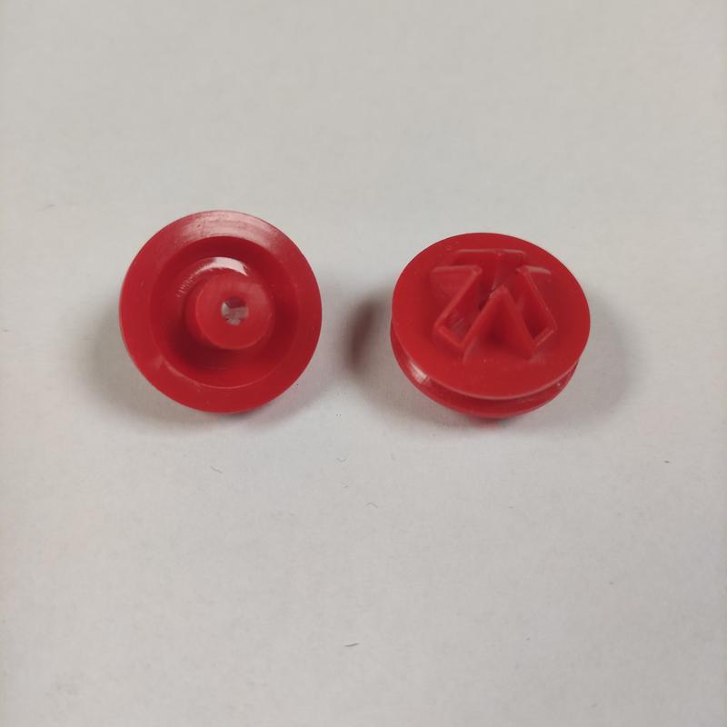 Díl se používá od prvopočátku výroby u stavebnice SEVA jako kladka, světlo u velkých aut, nebo např. v kombinaci s kovovou hřídelí a plastovou pojistkou jako díl vynášející listy vrtule helikoptéry nebo mlýna, umožňující otáčecí pohyb kolem osy hřídele. Díl pasuje na staré i nové typy kostek SEVA.